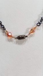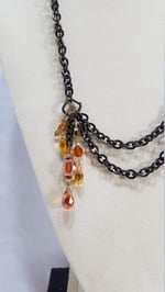 Amber and Orange Crystal Drops and Bronze Chain Simple and Elegant Double Strand Asymmetrical Steampunk Fantasy Necklace and Earrings Set
