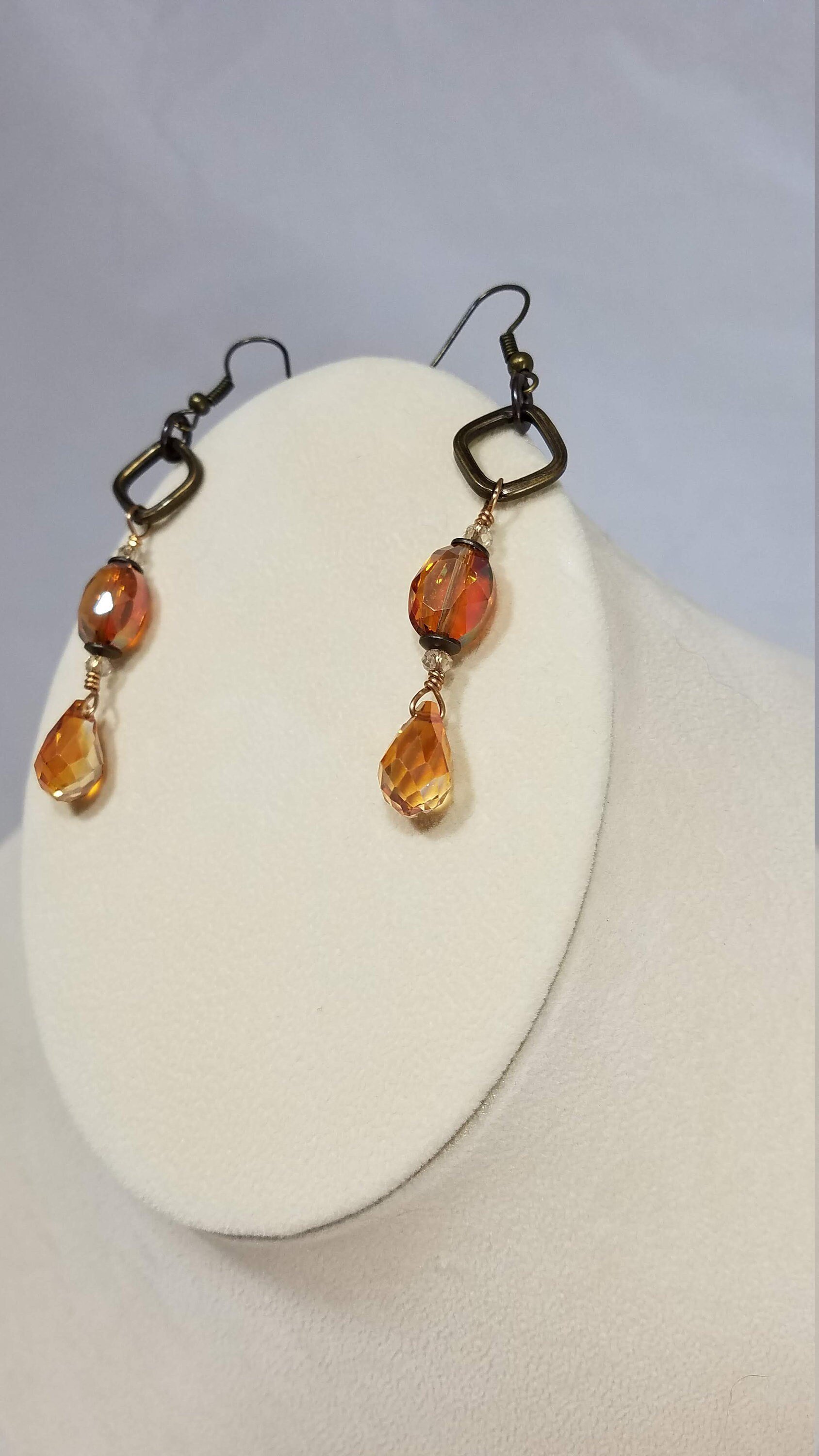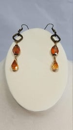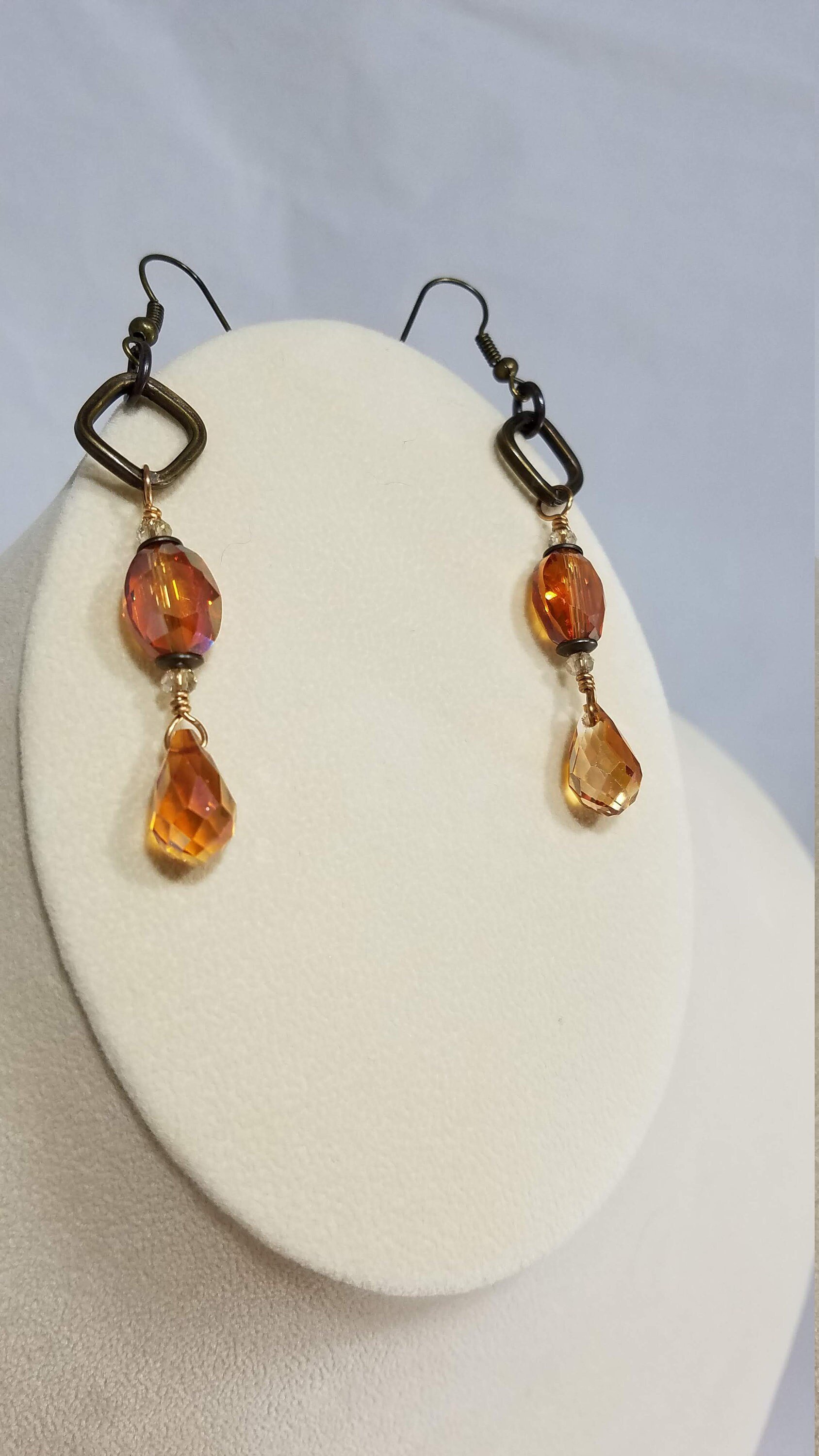 Original product name: Amber and Orange Crystal Drops and Bronze Chain Simple and Elegant Double Strand Asymmetrical Steampunk Fantasy Necklace and Earrings Set