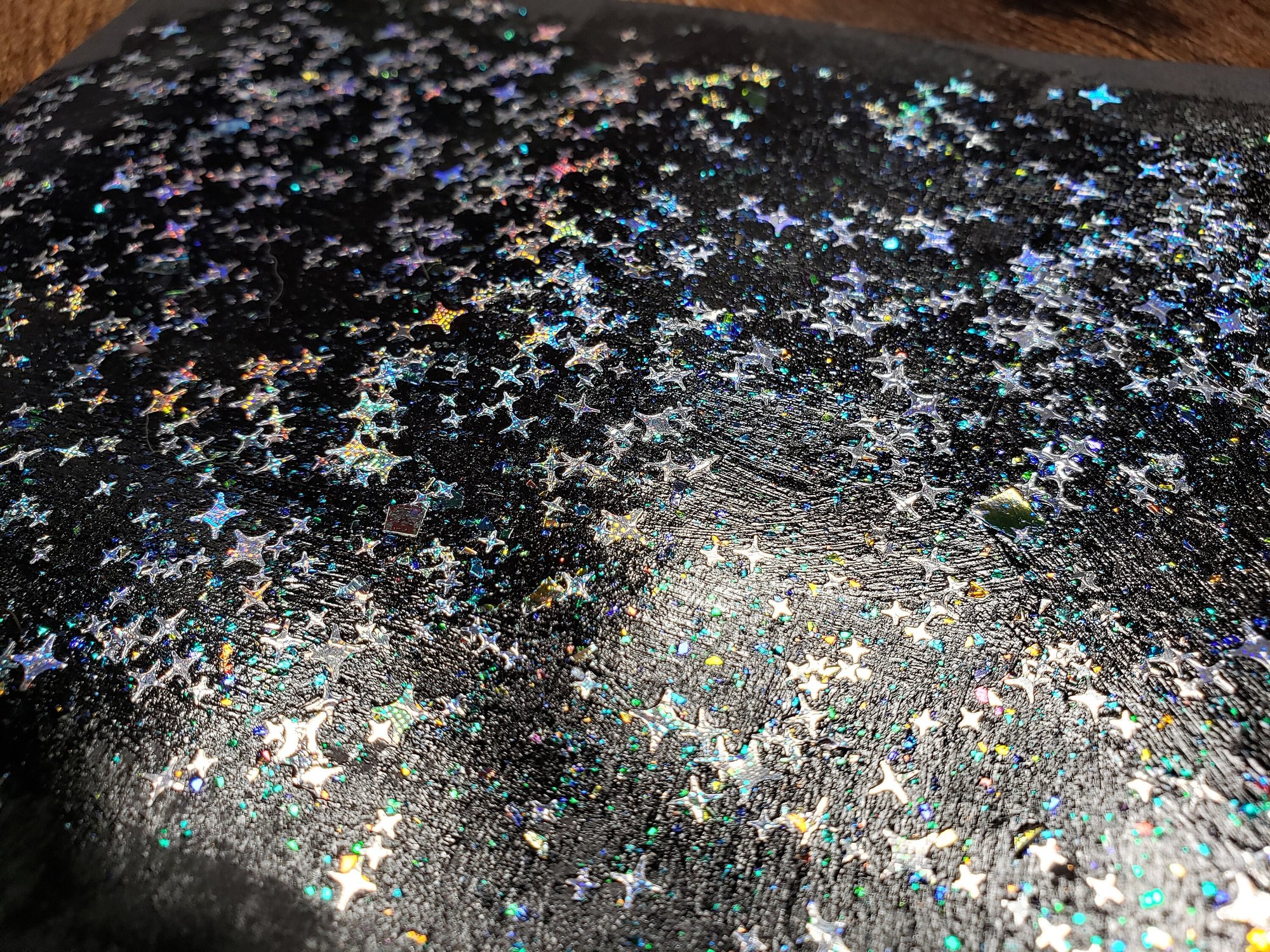 Calypso Holographic Stars Glaze 5ml sample size, 50ml & 100ml sizes Stars and Rainbow Holographic Mylar Flakes in a Glossy Top Coat
