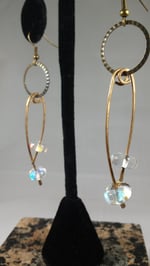 Original product name: Clear Aurora Borealis Coated Crystal Beads on Hammered Bronze Vegan Feather Wire Steampunk Feather Vegan Alternative Bronze Hook Earrings