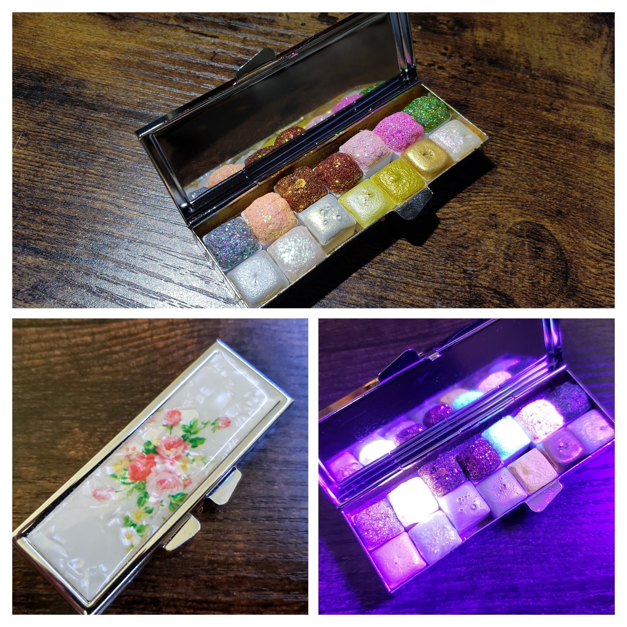 Custom Sample Tin Flower Bouquet Metal Magnetic Palette 14 x .5 ml Mini Pan Handmade Watercolor P...