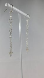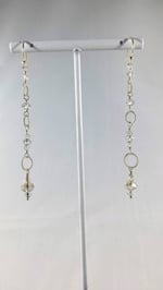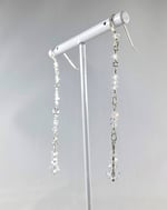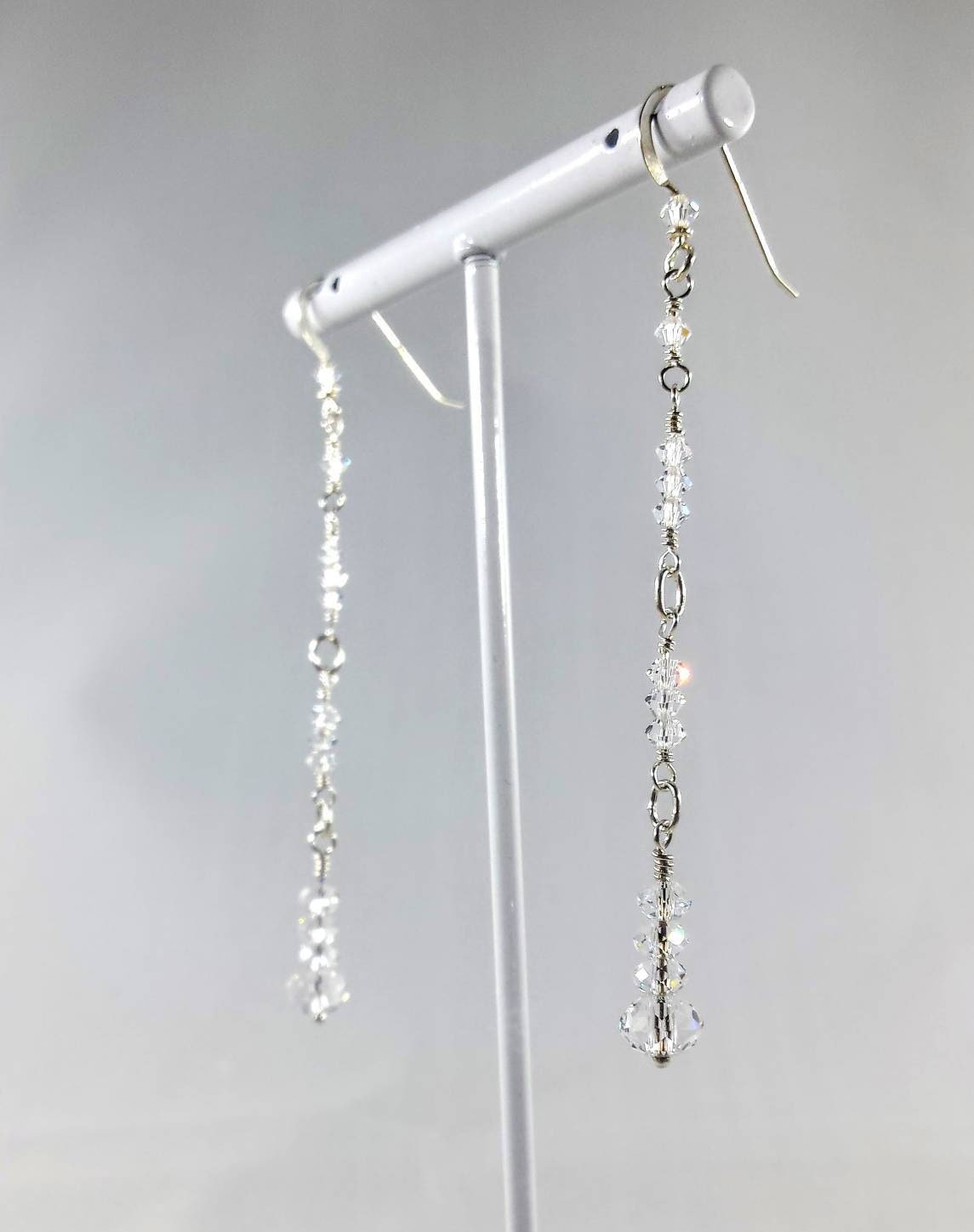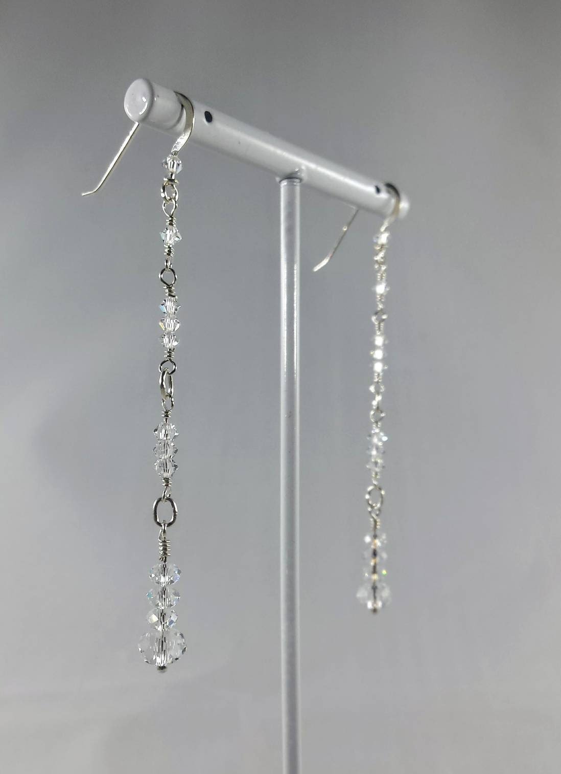 Silver coated Swarovski crystals - sparkling happiness! These slightly longer (about 7 cm) earrings are a fabulous way to add dazzle and sparkle to your wardrobe. Made by hand using sterling silver wire and loaded with scintillating silver coated Swarovski crystals. Sterling silver hooks ensure you will be able to wear your earrings in comfort.