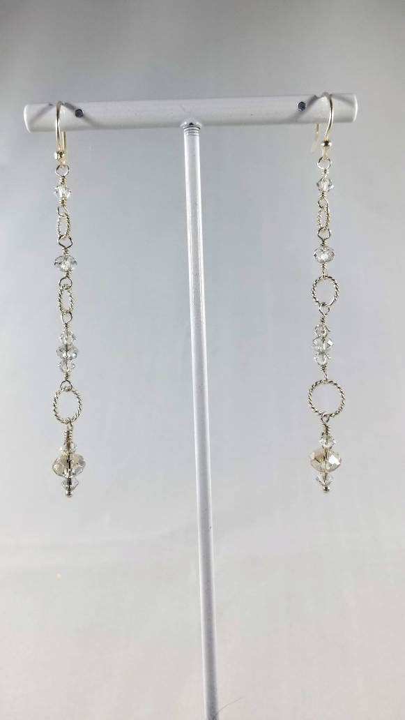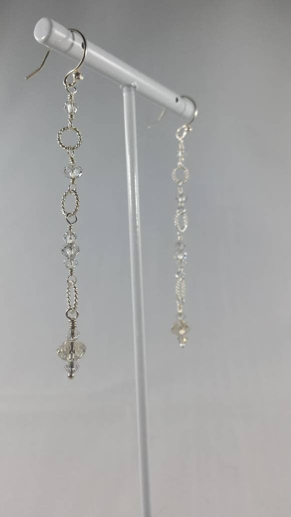 Original product name: Dancing Queen Fabulous Silver Coated Swarovski Crystal Sterling Silver Twirl Rings Long Dangle and Dazzle Earrings