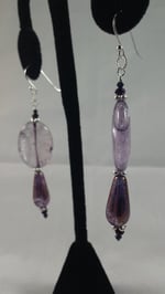Original product name: February Birthstone Amethyst Metallic Piccasso Finish Drops and Sterling Silver Acccents on Sterling Silver Hooks Valentine Healing Birthday