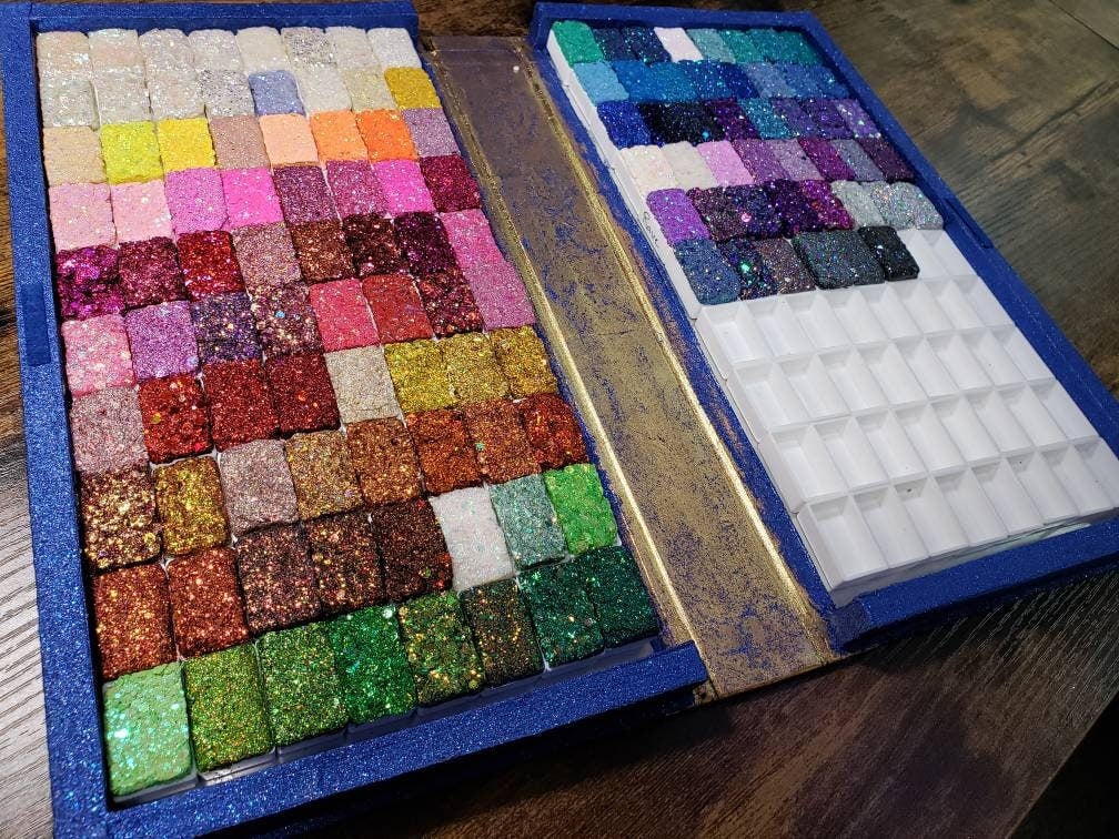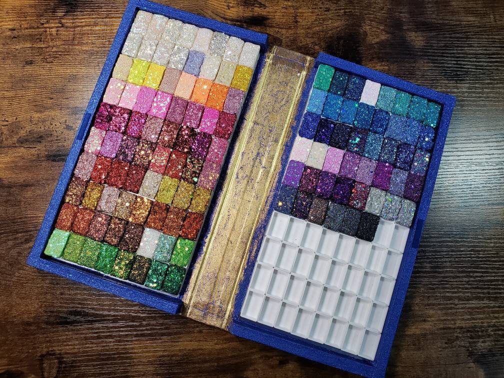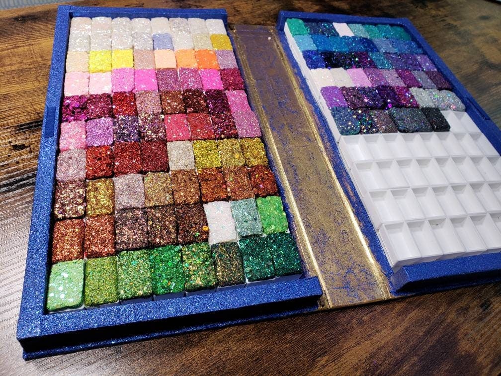 Original product name: Giant Blue + Gold Book of Glitter Extravaganza-Your Choice of 160 Full or 320 Half Pan Mica Handcrafted Watercolor Paints