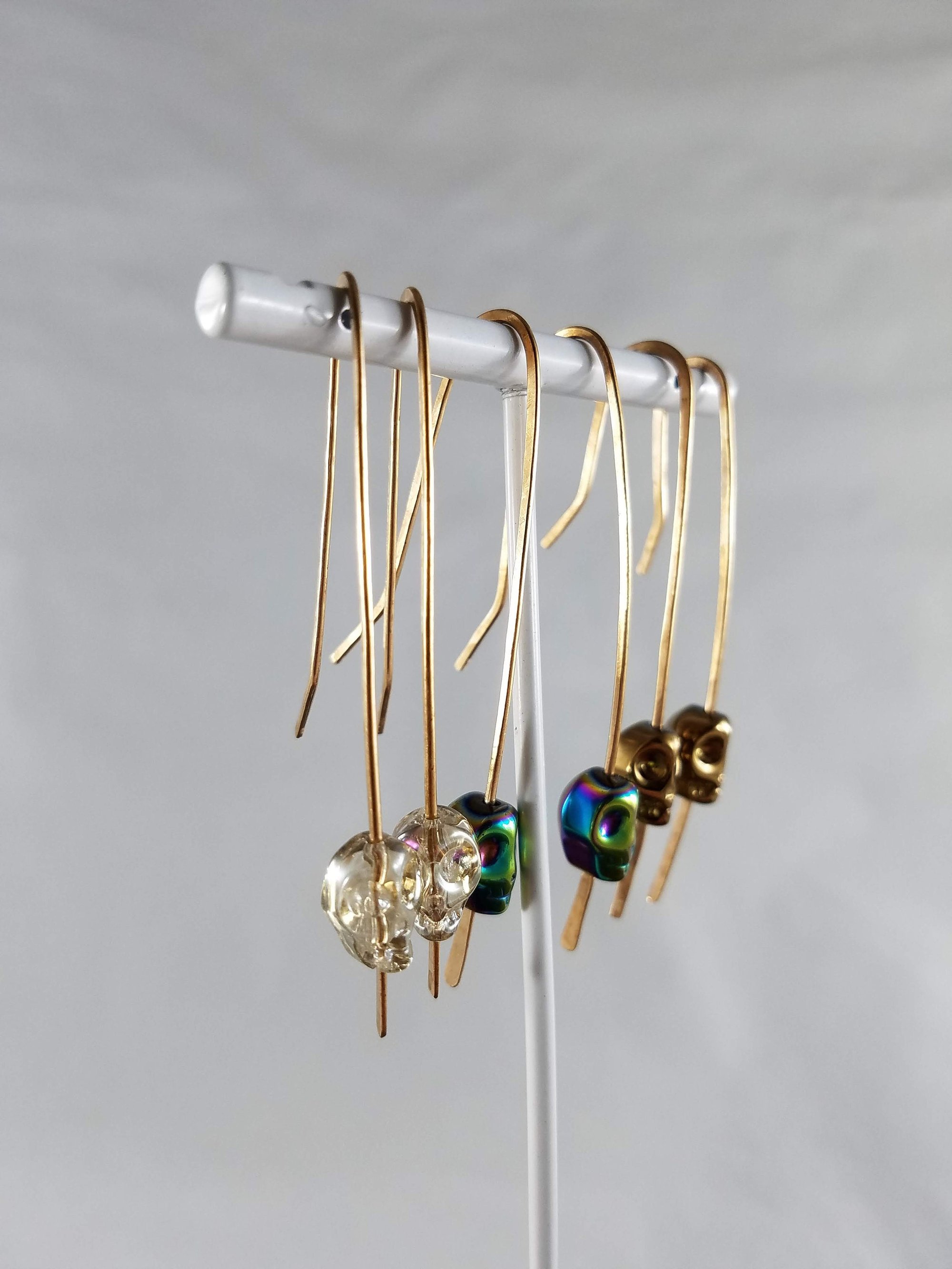 A variety of gorgeous and simple skull Elf Ear handmade bronze wire earrings for your next deathly hollow! We have them in a variety of colors, all the same style and length.