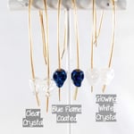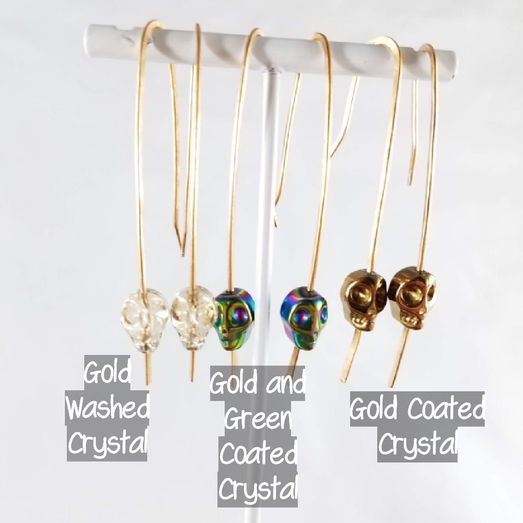 Glass Crystal Skull Elf Ear Gauged Hook Earrings Six Colors to Choose From Crystal Gold Silver Blue and More