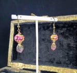 Original product name: Glowing Flame Coated Faceted Crystals and Aurora Borealis Coated Crystal Leaf Beads Delightful Fantasy Bronze Hook Earrings