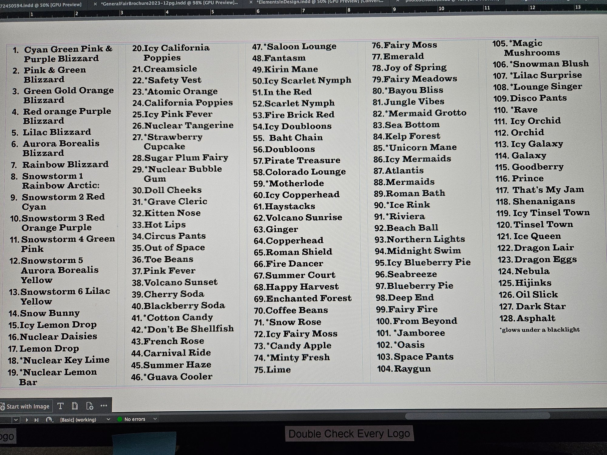 Fantasm: Difficult to describe. Dominant colors are Green, Red, and Cyan. Sometimes Red, Sometimes Green Supershiny Glitter
