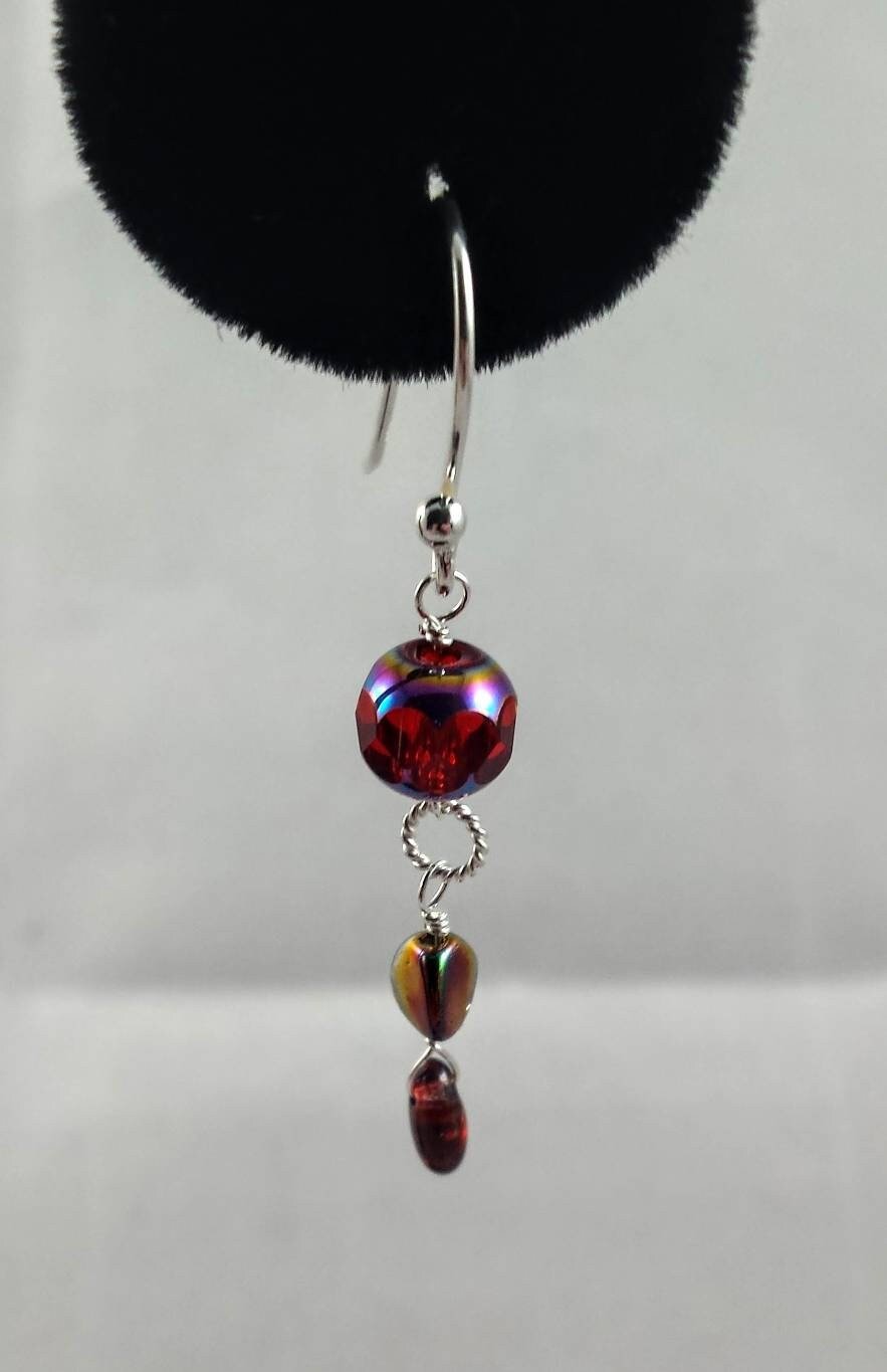 Are you ready to rock?! These earrings may be small, but they pack a ton of glam in their tiny package. Made using real Sterling silver wire hooks, wires, and accents, as well as metallic rainbow finished red crystals with a unique pip shaped beads & rainbow finished drops. These earrings will be perfect for your little black dress or a pair of jeans and a t-shirt.