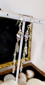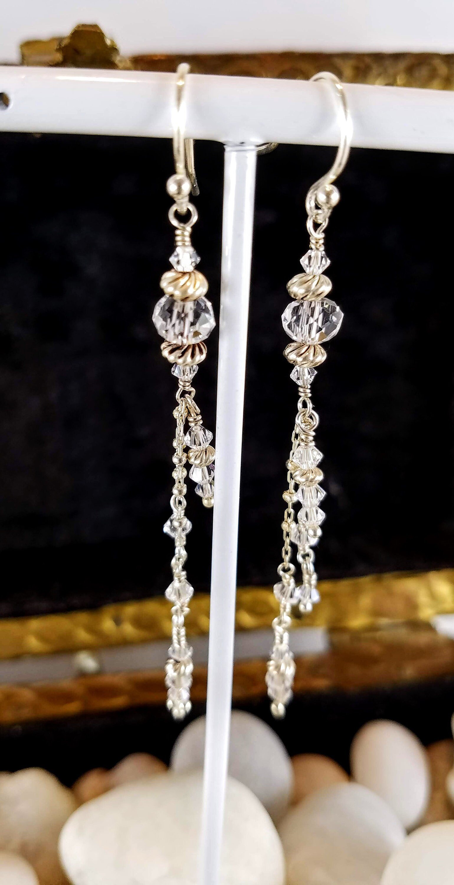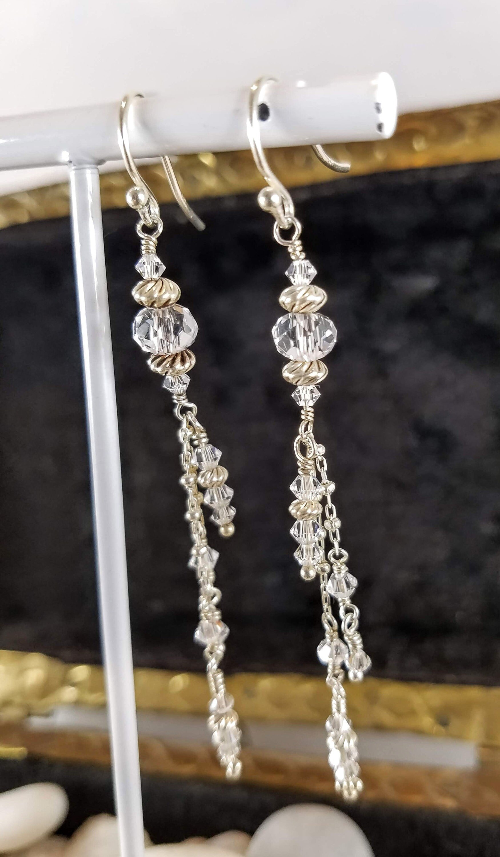 Long Sterling and Swarovski Crystal Drops and Sterling Silver Cascades Silver Hook Fantasy Earrings