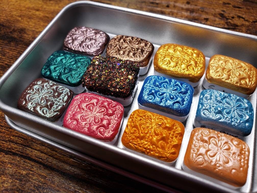 Original product name: Magical Crafting Litha Summer Solstice Metal Magnetic Palette 12 1/4 Pans Watercolor Handmade Boutique Paint Palette