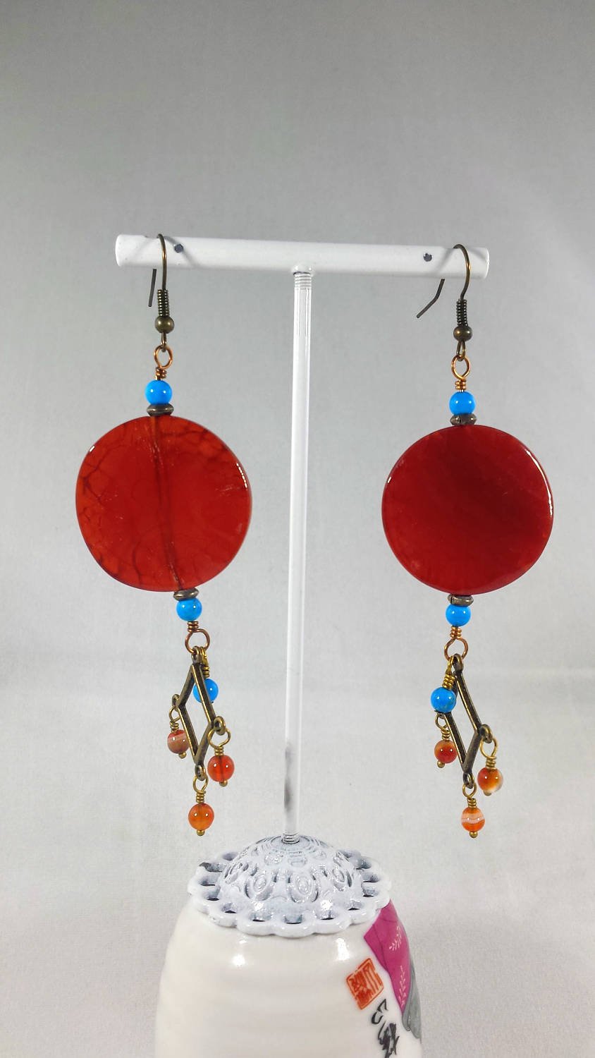 Original product name: Mediterranean Summer Orange and Bronze Shoulder Duster Extra Long Natural Red Jasper and North African Bronze Tribal One of a Kind Earrings