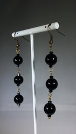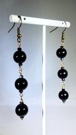 Three beautiful onyx spheres are accented with Swarovski crystals and hung on Bronze hooks. Simple, elegant, and perfect for any occasion.