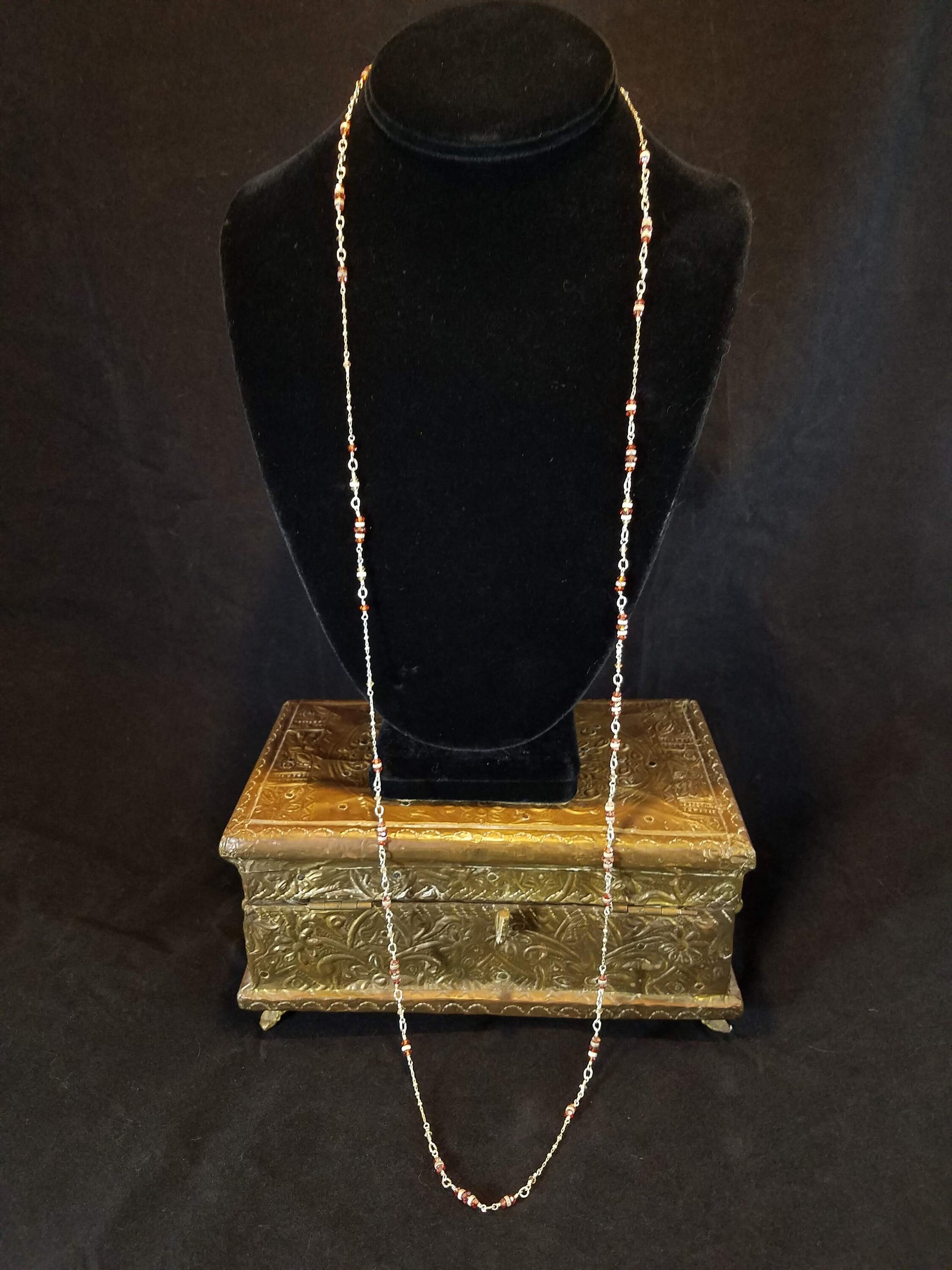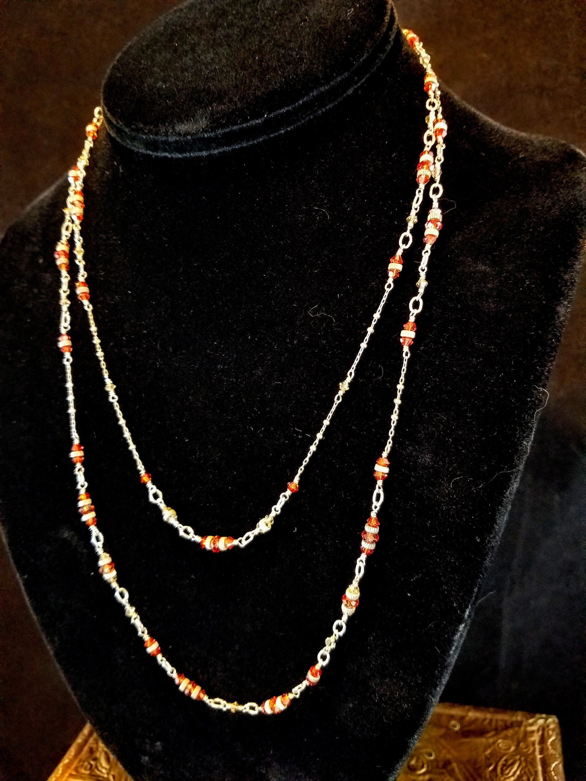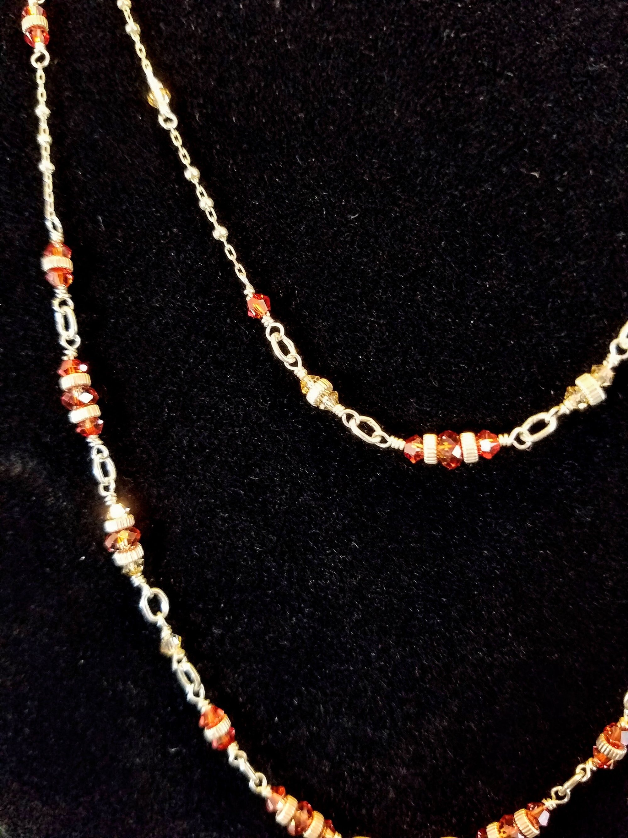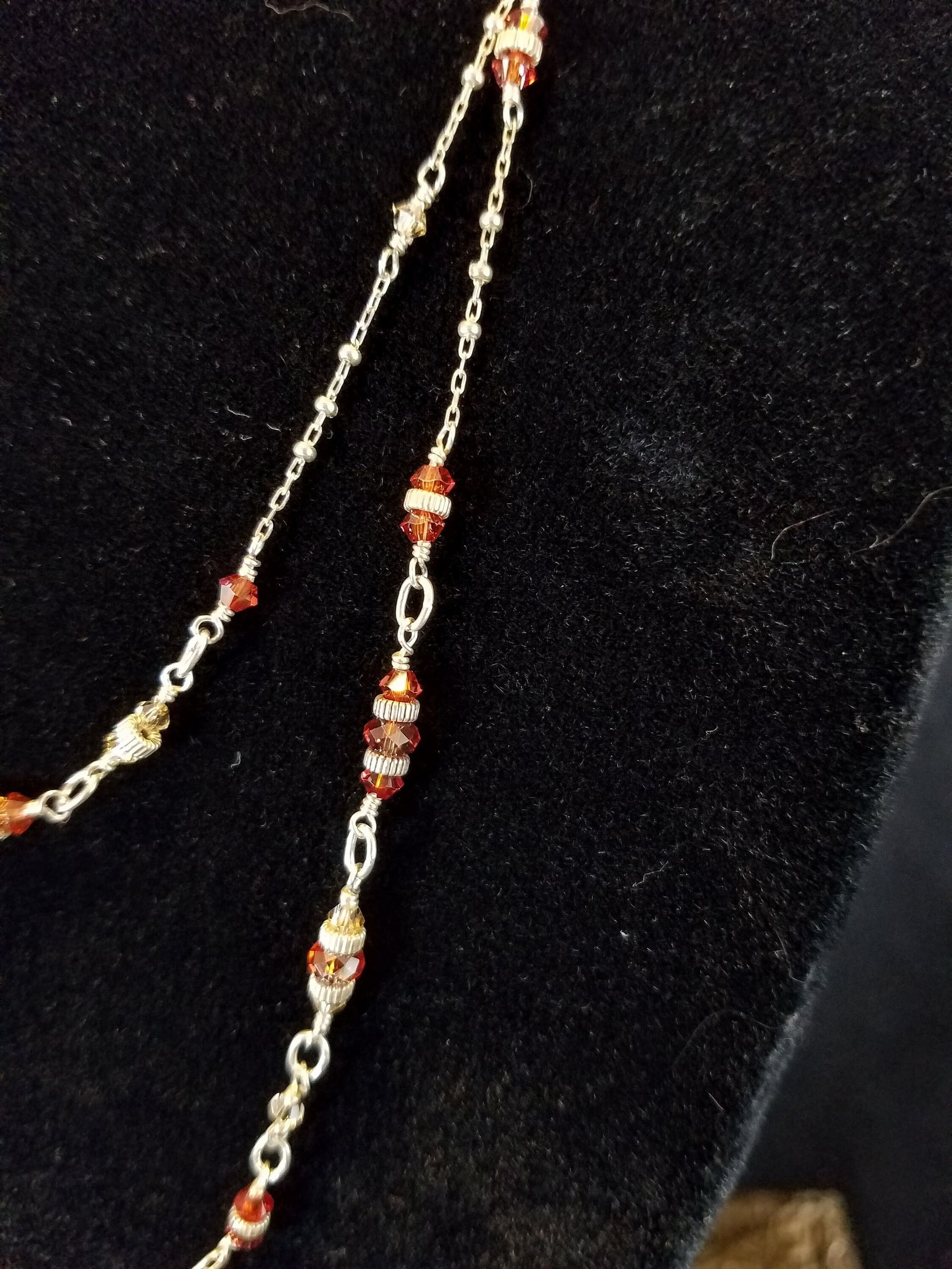 Extra long and extra elegant, perfect for a night at the opera or dinner with friends. You can leave it long to swing or double or triple it for a shorter, layered look. Made from orange flame Swarovski crystals and sterling silver chains and accents, each link is handmade!