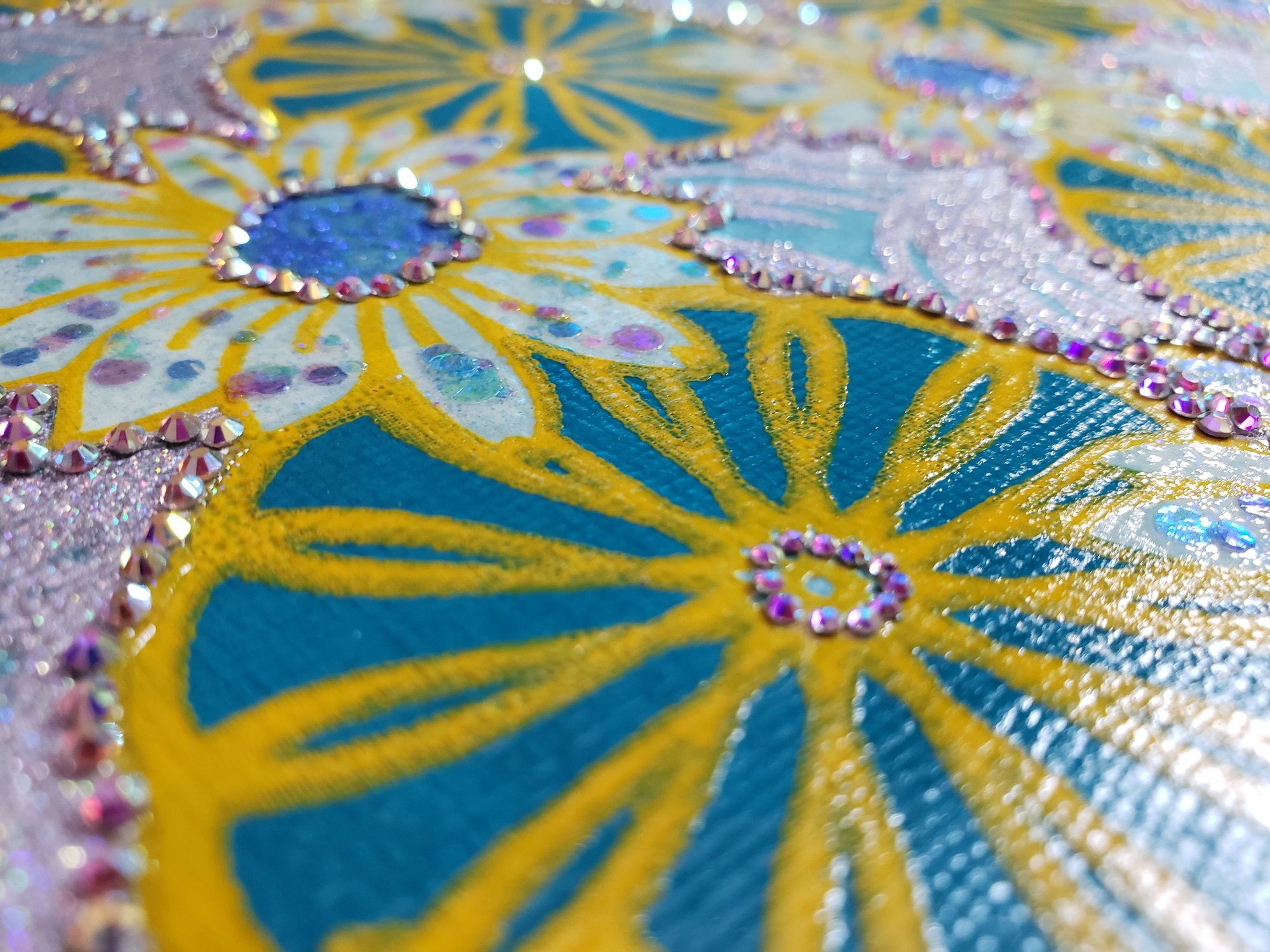 Spring Flowers Large Hand Painted & Rhinestone Decorated Handmade Magnetic Makeup Shrine (Makeup Not