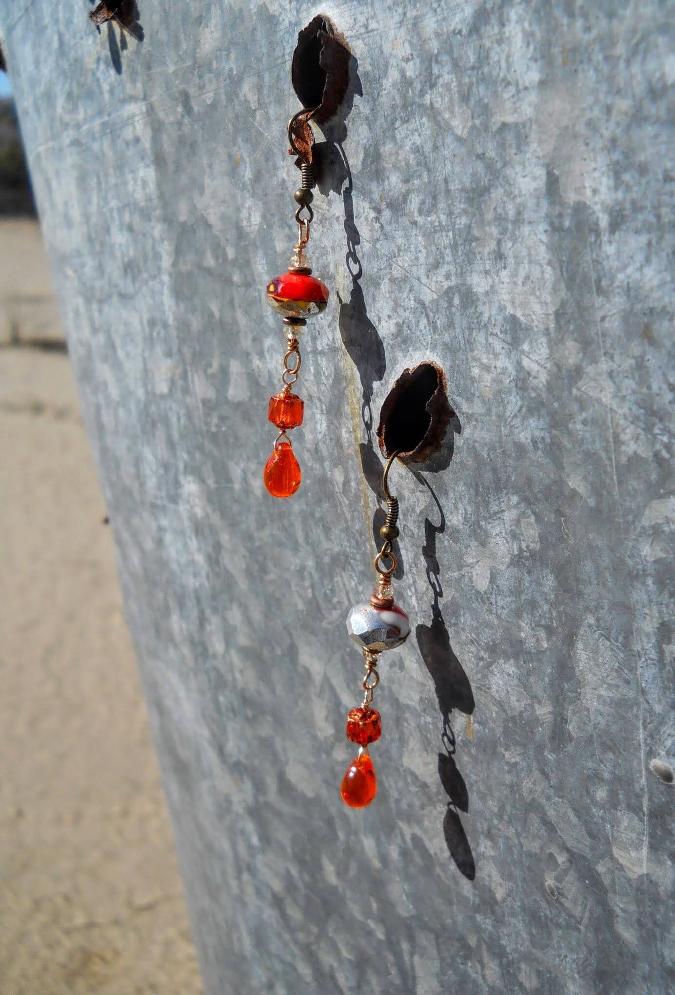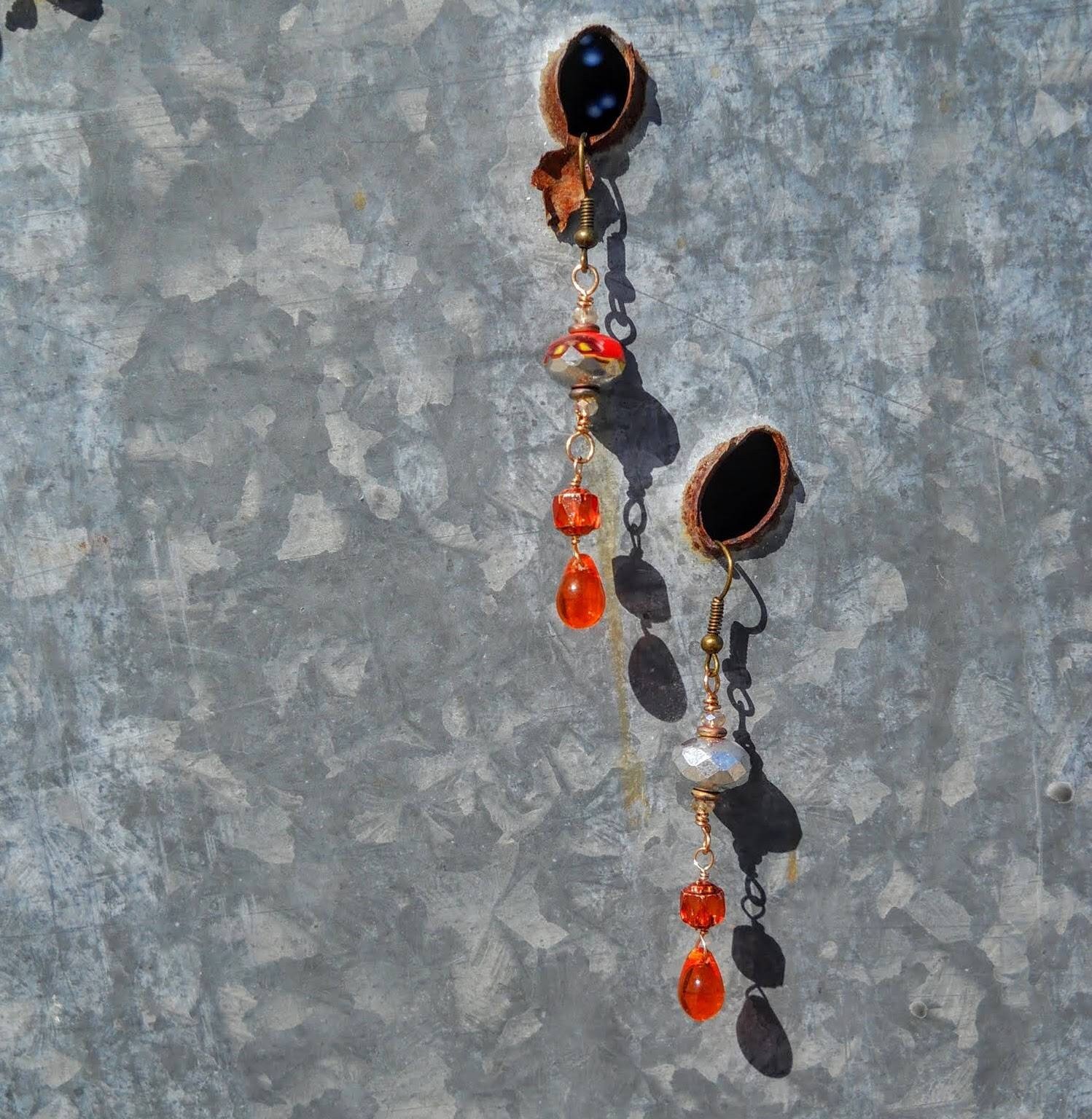 These delicate and delightful earrings are hand made using bronze wire, hooks, and accents; beautiful vintage Venetian glass; bright orange glass drops! They're not too long, a little more than 2 inches, so they'll fit just about anyone who loves a touch of the Victorian Age and a taste of Elegance.